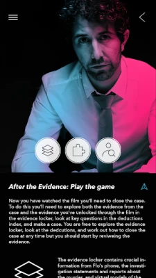 After the Evidence is an immersive story experience that combines film with investigation gameplay. Gather the evidence whilst watching the film then use that evidence to investigate, make deductions and close the case.