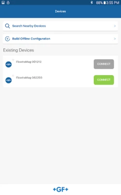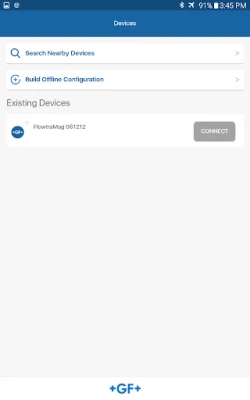GF Piping Systems Configuration Tool allows users to configure their Signet 2580 FlowtraMag meter to the parameters required for their system. Users can change the flow unit, totalizer unit, averaging, sensitivity, low flow cut off, span the 4 to 20 mA output, and monitor the FlowtraMag on their Android device.