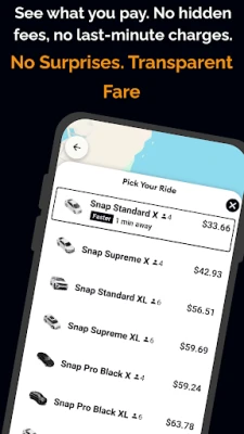 Snap Ride - Your Ridesharing app is a digital platform aimed to provide the safest and the most convenient ride experience in Australia. Choose your solo rides, shared rides, wait & save, priority pickup with our Snap Standard X, Snap Standard XL, Snap Supreme X, Snap Supreme XL, Snap Professional Black X, Snap Professional Black XL, Snap My Lovely Pet Ride, and Snap WAV Ride. Whether you are catching a flight, commuting to the office, running errands, or going out for the night, this ridesharing app offers you multiple ways to get there.